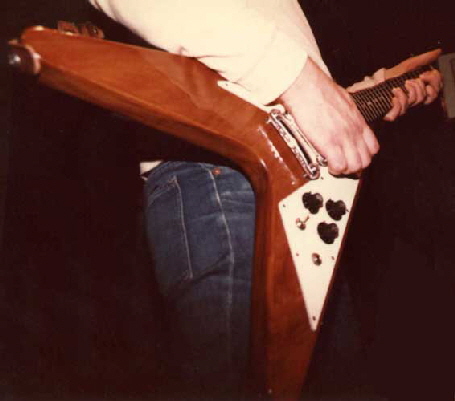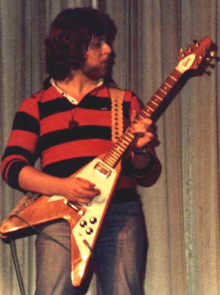 Live, Pete plays a Kahler equipped Gibson Flying ‘V’ with an Axon guitar synth, through a MESA Boogie rack setup with digital processing. He uses RFX, Palmer, Terratec, DigiTech, Orange and Vox equipment as well as Line6, Ibanez, Yamaha and bespoke guitars. Pete’s floorboard equipment is composed of midi controllers for the rack equipment.